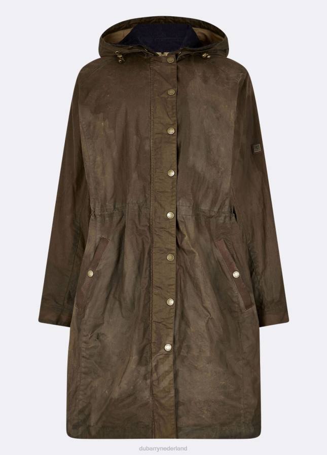 De ballyvaughan, waar praktisch platteland en festivalchic samenkomen, is een lange jas van waskatoen met een afritsbare capuchon en een verstelbare taille met trekkoord voor jouw persoonlijke stijl. Er zijn handverwarmingszakken aan de buitenkant met een leren bekleding en een binnenzak waarin waardevolle spullen veilig opgeborgen kunnen worden. de kraag en manchetten hebben een koord in een contrasterende kleur en aan de binnenkant zit een vuilafstotende binnenzoom, dus of je nu in de modder spettert tijdens het wandelen of dansen met de hond, een ballyvaughan en een paar dubarry countrylaarzen zorgen ervoor dat je gedekt bent.